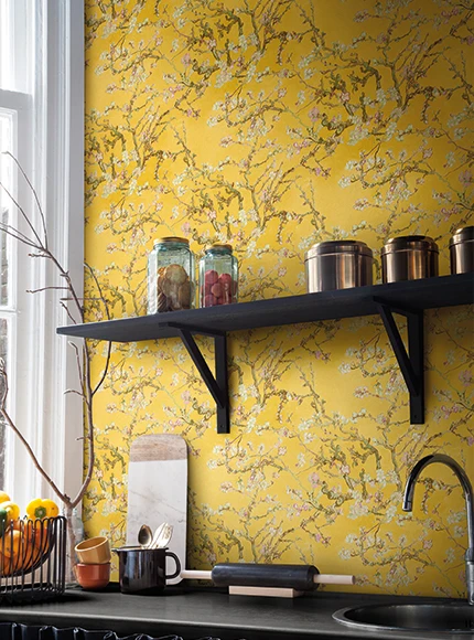 مجموعه کاغذدیواری Van Gogh از آثار نقاش معروف هلندی ونسان ونگوگ ( 1890-1853 ) الهام گرفته شده است.، هنر مدرن پاریس مشوق ونگوگ برای اتخاذ سبک نقاشی روشن تر، درخشان تر و آزادانه تر بوده است. وی برای کنتراست رنگ های روشن و ایجاد سبک اکسپرسیون در نقاشی مشهور شد. برای ونگوگ ، طبیعت و هنر پیوندی جدایی ناپذیر داشتند. در این مجموعه کاغذدیواری آثار متعددی از این هنرمند برجسته را خواهید دید: درخت هلوی صورتی ، شکوفه های بادام، باغ Daubigny ، زنبق ها ، Wheatfield با ماشین درو و انبوهی از رمان های فرانسوی ، همچنین طرح اورجینال آفتابگردان، یکی از برجسته ترین آثار ونگوگ و نامه های او به برادرش ، بخشی از این مجموعه کاغذدیواری نفیس و منحصر به فرد می باشند.ویژگی ها