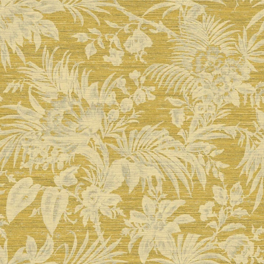 با استفاده از تکنیک خاص چاپ و رنگ، برگهای بزرگ گیاه فیلودندرون به طرز شگفت انگیزی واقعی به نظر میرسد. برجسته بودن برگها روی کاغذ وینیل، با رنگهای طلایی و نقرهای نشان داده شده است.