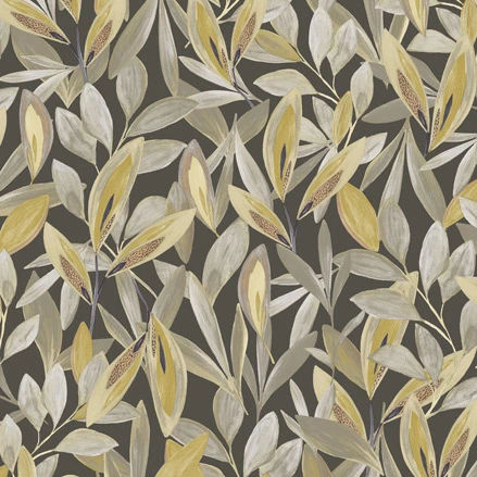 با استفاده از تکنیک خاص چاپ و رنگ، برگهای بزرگ گیاه فیلودندرون به طرز شگفت انگیزی واقعی به نظر میرسد. برجسته بودن برگها روی کاغذ وینیل، با رنگهای طلایی و نقرهای نشان داده شده است.